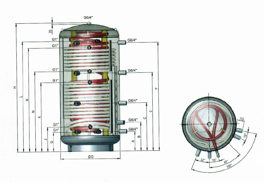 - 2 mufy 6/4‘‘ dla opcjonalnego zamontowania ogrzewania elektrycznego typu KWS 800 / 1000 R2