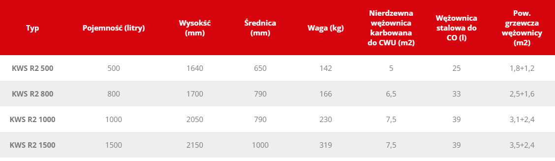 - Dwie duże wężownice do podłączenia systemu solarnego i dodatkowego źródła ciepła