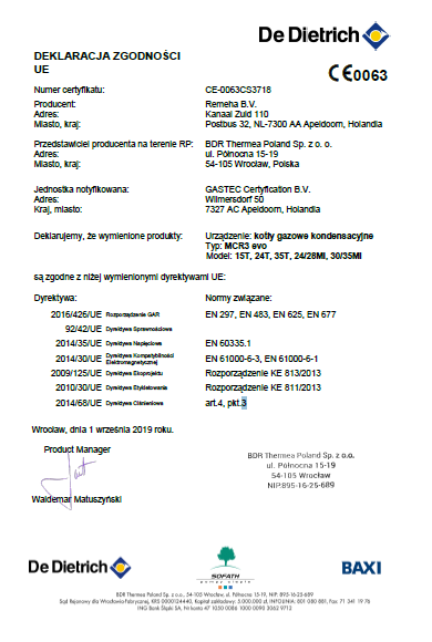 Pakiet kocioł gazowy kondensacyjny DeDietrich MCR3 evo 24T/SRK150 + Smart TC