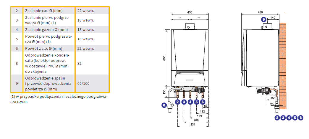 - Naścienny gazowy kocioł kondensacyjny 1-funkcyjny