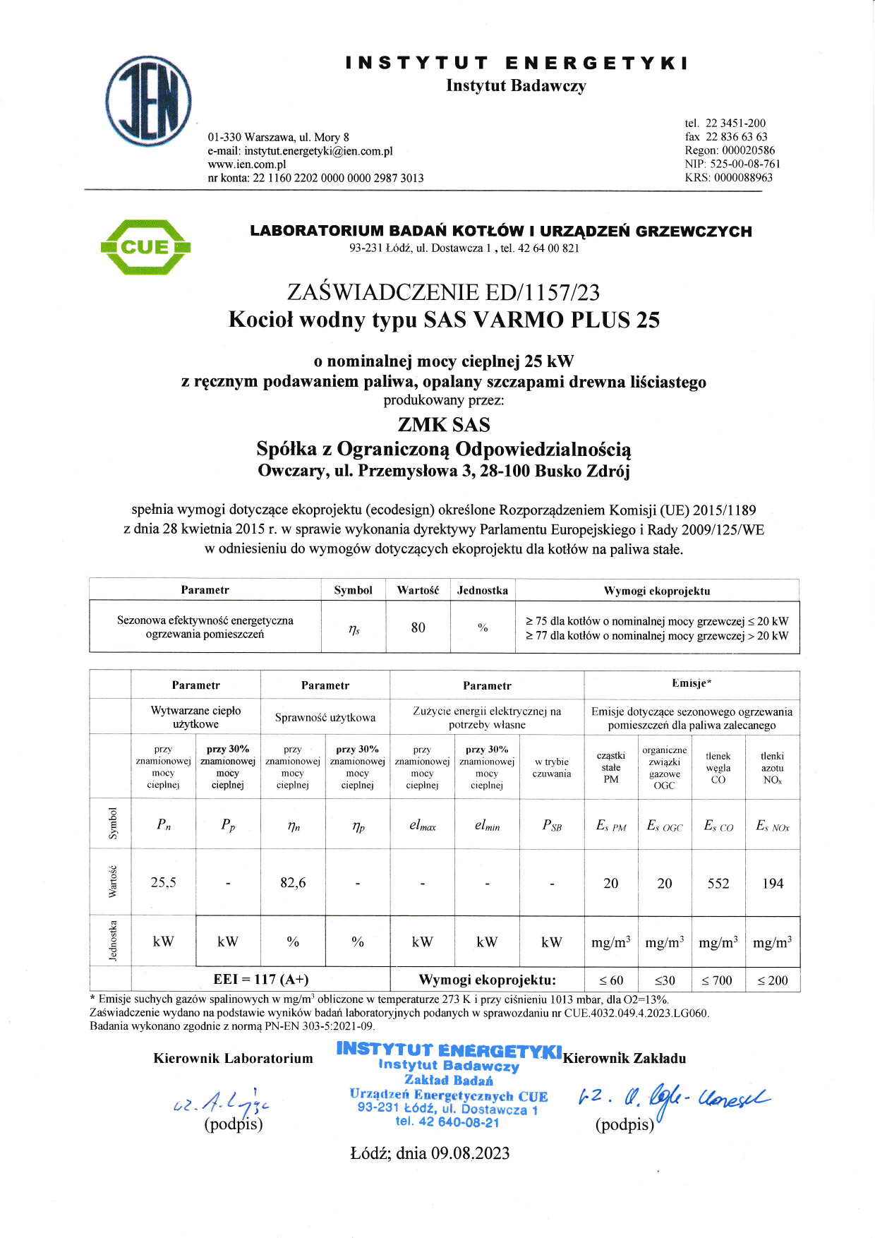 Klasa: 5 (najwyższa, wg PN-EN 303-5:2021-09)