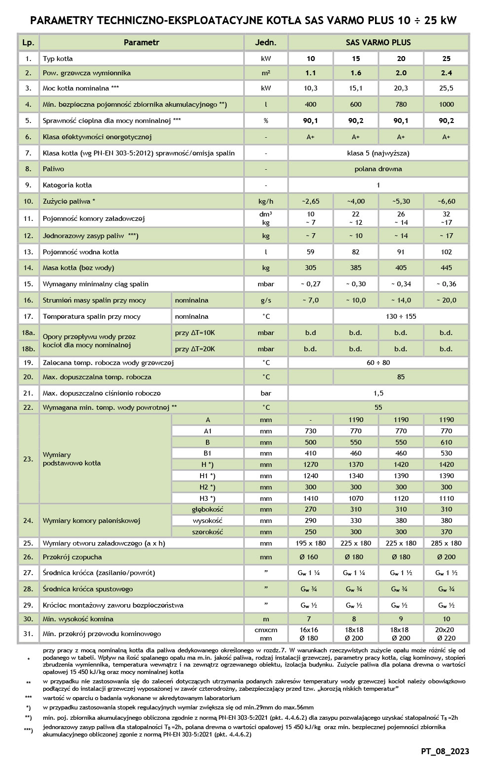 Kocioł piec SAS Varmo PLUS 25 kW zgazowujący drewno, A+ PM <20, 5 klasa, EcoDesign